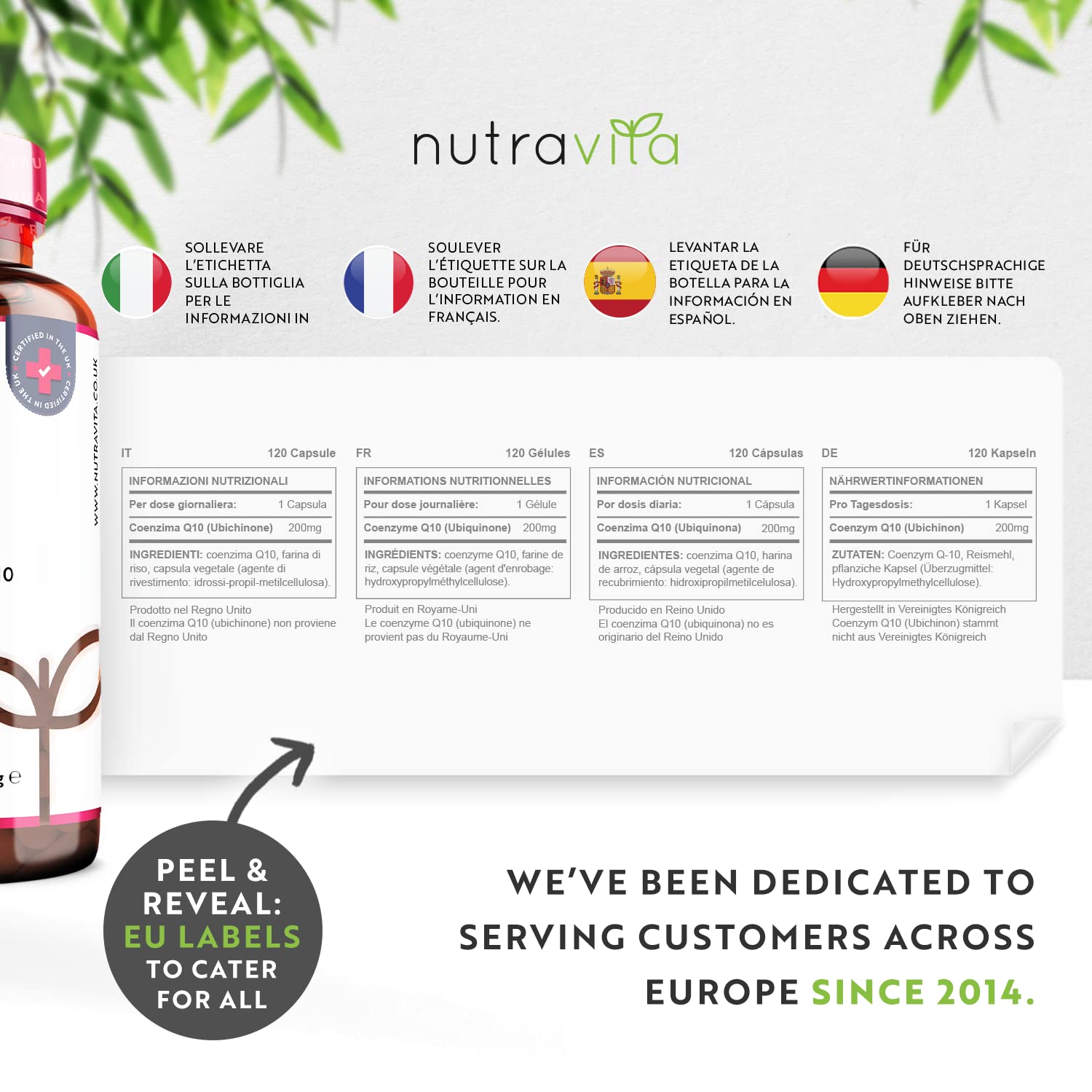 - ✔ WHY NUTRAVITA'S COENZYME Q10? - Our high strength CoQ10 vegan capsules contain 200mg of 100% naturally fermented and easily absorbed Coenzyme Q-10 or Ubiquinone per capsule. Each bottle comes with 120 capsules of 200mg CoEnzyme Q10 for a four month supply.