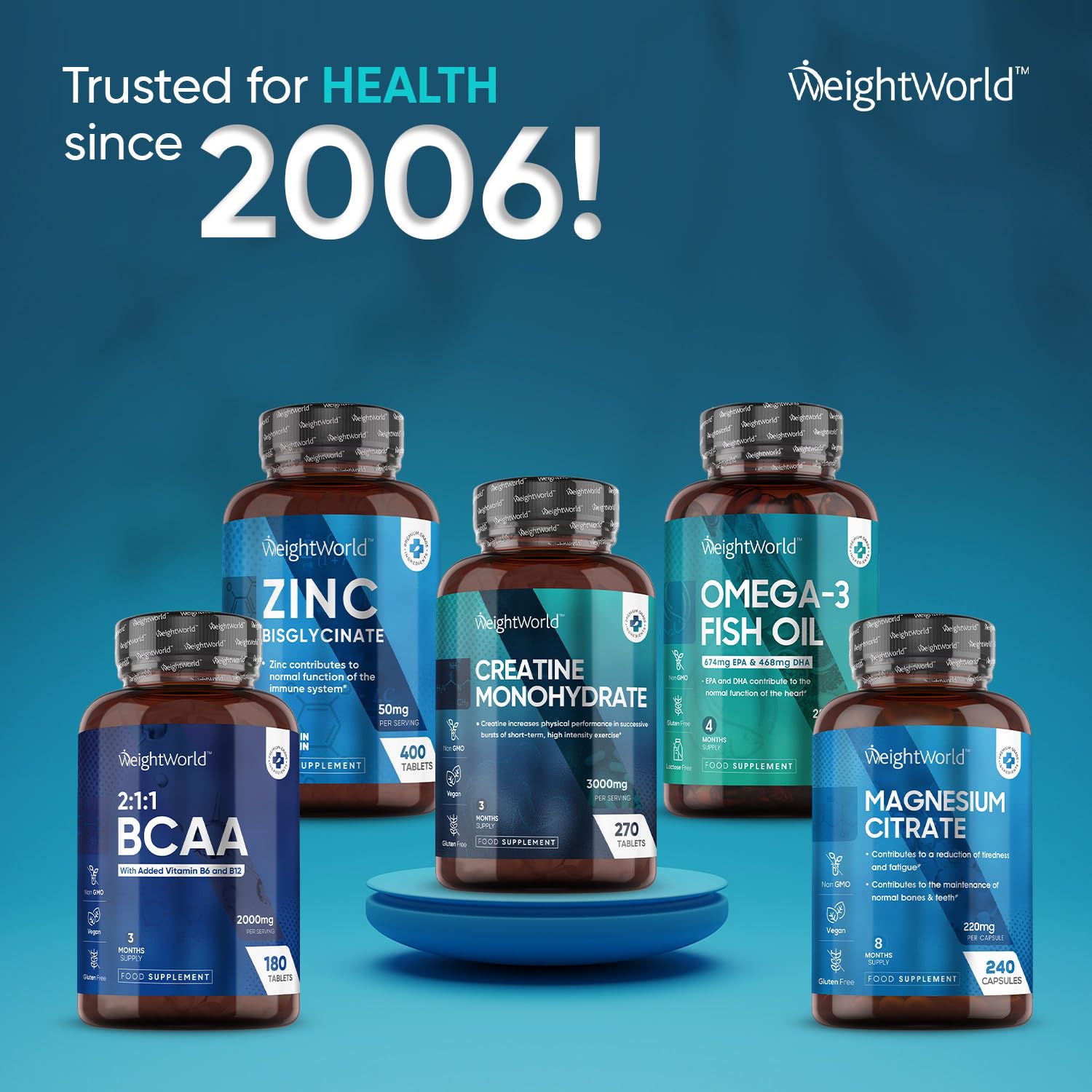 - WEIGHTWORLD – INSPIRING WELLNESS SINCE 2006: A British-grown family business with a decade of experience in formulating and manufacturing 200+ vitamins, food supplements and health devices. All our products are made using premium quality ingredients and have gone through intensive research to meet the daily nutritional requirements of people across the globe. We create UK Made, GMP-certified products aimed at promoting a healthier body & mind for you and your family.