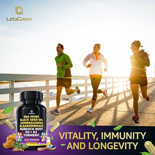 LetaGreen Irish Sea Moss Capsules – 120 Wildcrafted Sea Moss Pills with Black Seed Oil