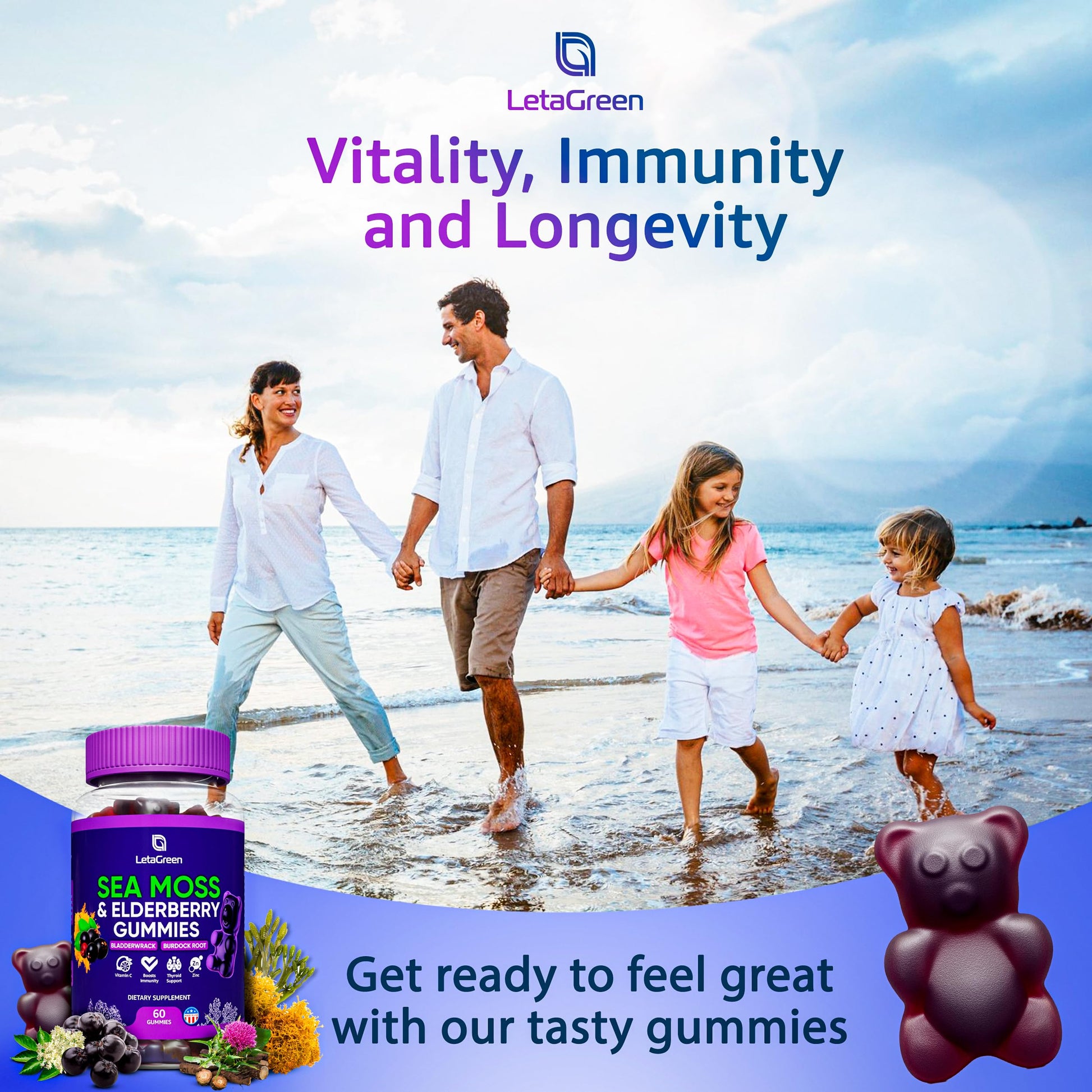 • From nature with love: Our elderberry gummy bears contain only natural ingredients: Irish sea moss, elderberry, bladderwrack, and burdock root. With a combination of vitamin C and zinc, it improves digestion, supports joints, and boosts your immunity. Irish moss supplement is a great addition to any diet - from alkaline to keto and Dr Sebi's diet.