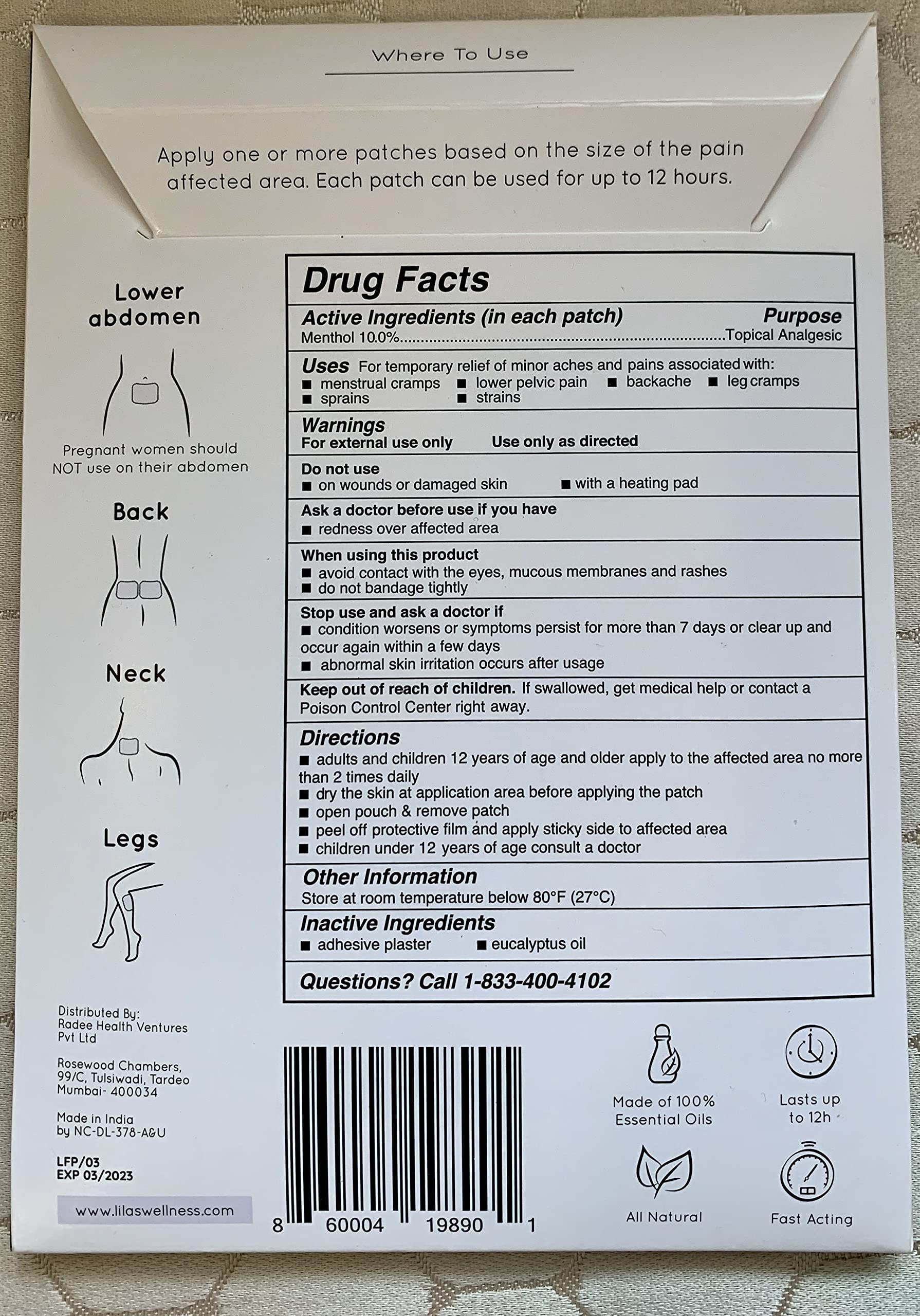 LILAS Period Cramps Pain Relief Patch - Pack of 5