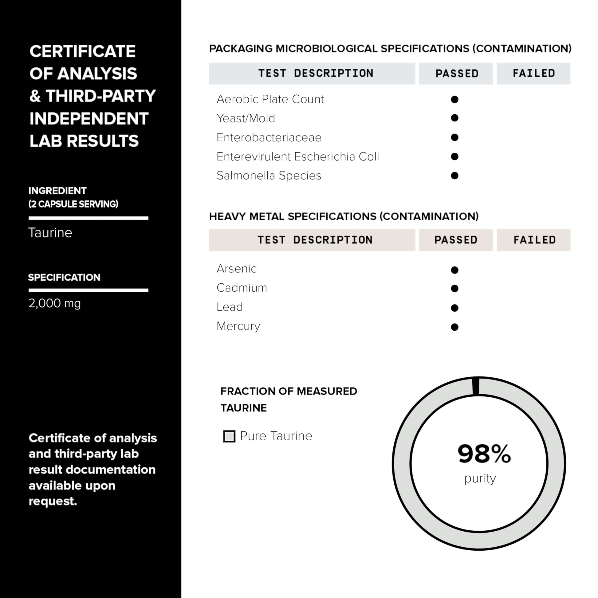 - Highly Purified and Bioavailable - Taurine has amazing health benefits, but purity and absorption have always been a major challenge; something most other taurine supplements don’t provide as it requires an extra step (and expense) in the manufacturing process. At a 98%+ purity level, Toniiq Taurine provides some of the purest, most potent taurine available.