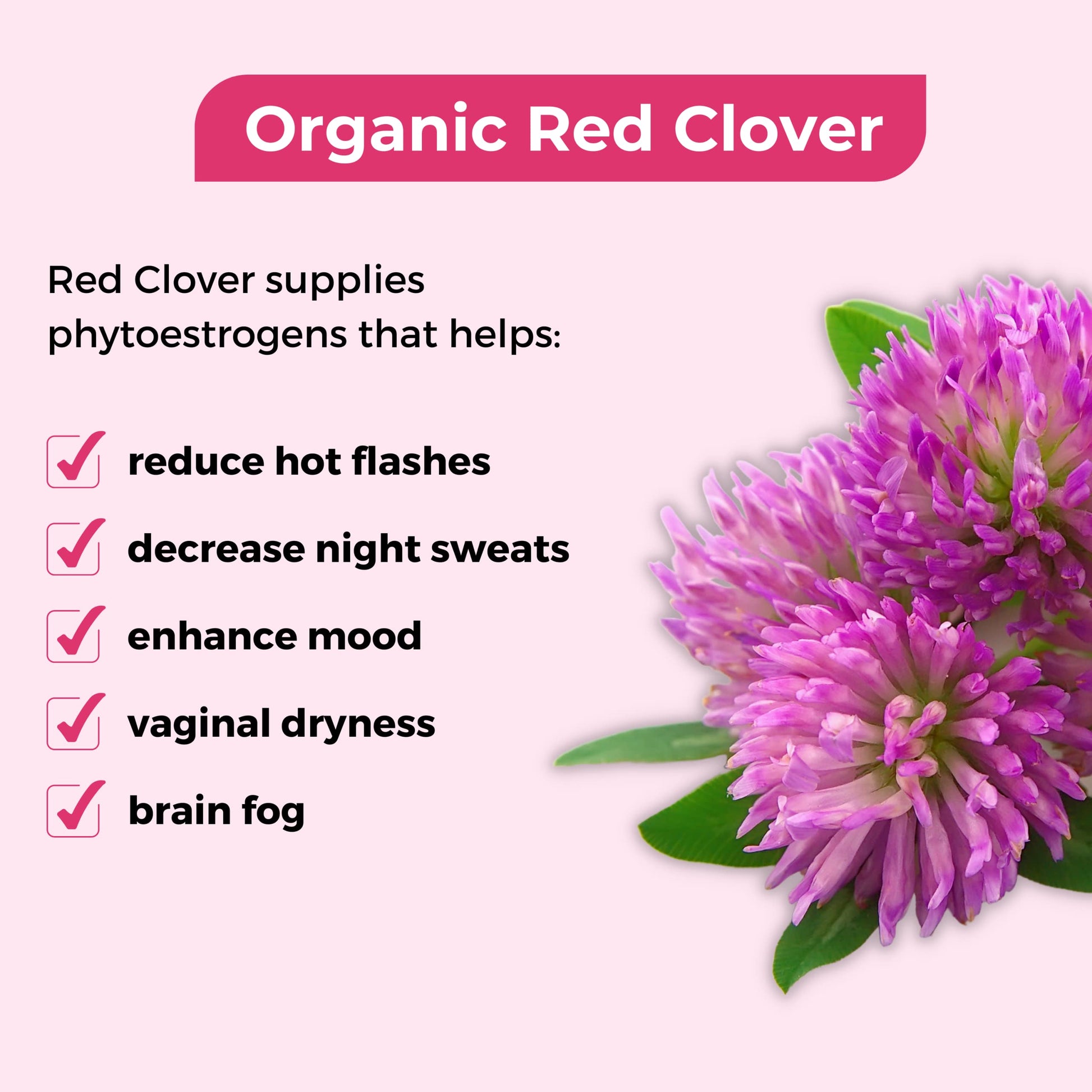 - Red Clover Tea: Red Clover contains 'isoflavones' which is believed to help reduce hot flashes, night sweats, insomnia, and other menopausal symptoms.