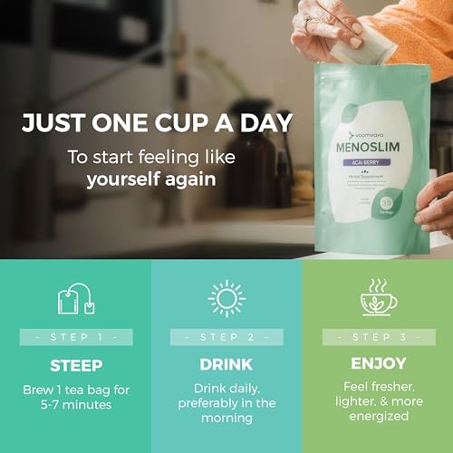 VoomVaya MenoSlim Tea - Natural Menopause Supplements, Perimenopause & Estrogen Supplement for Women - For Bloating, Hot flashes, Night Sweats & Meno-Belly - Acai Berry Flavor - 30 Teabags