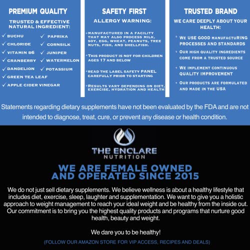 - 💧 WE CARE ABOUT YOUR HEALTH AND HAPPINESS: Feel Safe & Secure With Our Natural Water Pills For Men & Women Made In The USA With Highest Quality Standards And Premium Ingredients, Using GMP Standards & 3rd Party Tested. This Maximum Strength Water Retention Diuretic Supplement Is Non-GMO, Keto, Paleo Friendly & Perfect For Any Diet. Get The Best Natural Diuretic Herbs That Comes With A 90 Day Guarantee. Not Happy With Our Diuretics Water Retention Supplement? Contact Enclare Directly.
