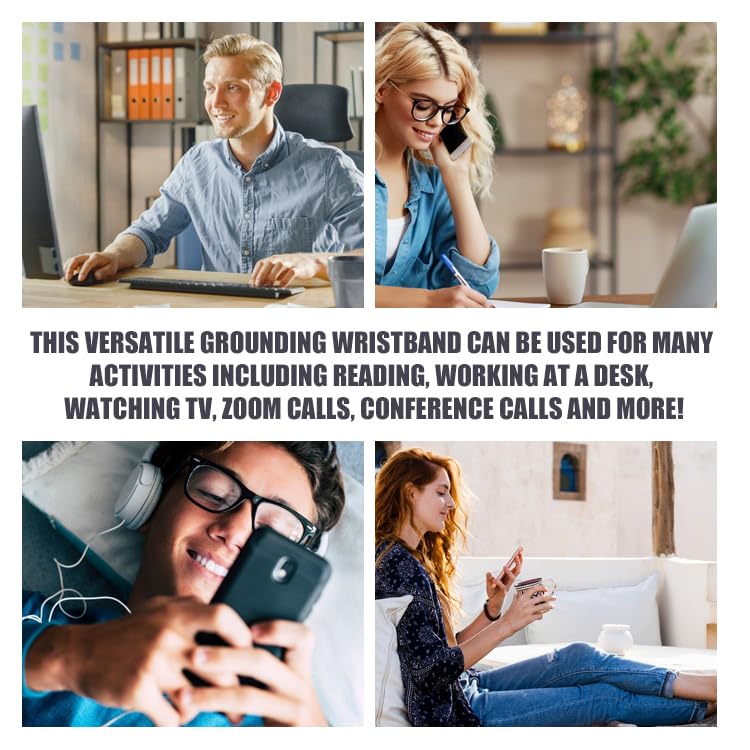 - 【Easy to Use】: Connect the ground strap to the grounding wire and plug it into the wall outlet. Grounding wristband for earthing can be easily adjusted to fit your wrist, it is suitable for reading, working at a desk, watching TV, talking on the phone, video conferencing.