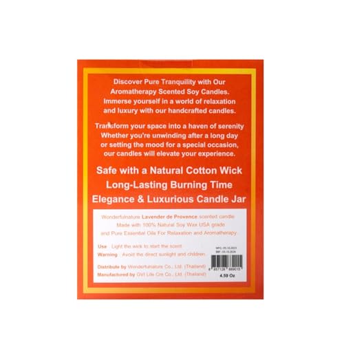 Details: Wonderfulnature Lavender de Provence Pure essential oil scented candle, Aromatherapy, 100% Natural soy wax, Single wick with Burning time longer 35 Hours 4.59oz 1glass/gift box