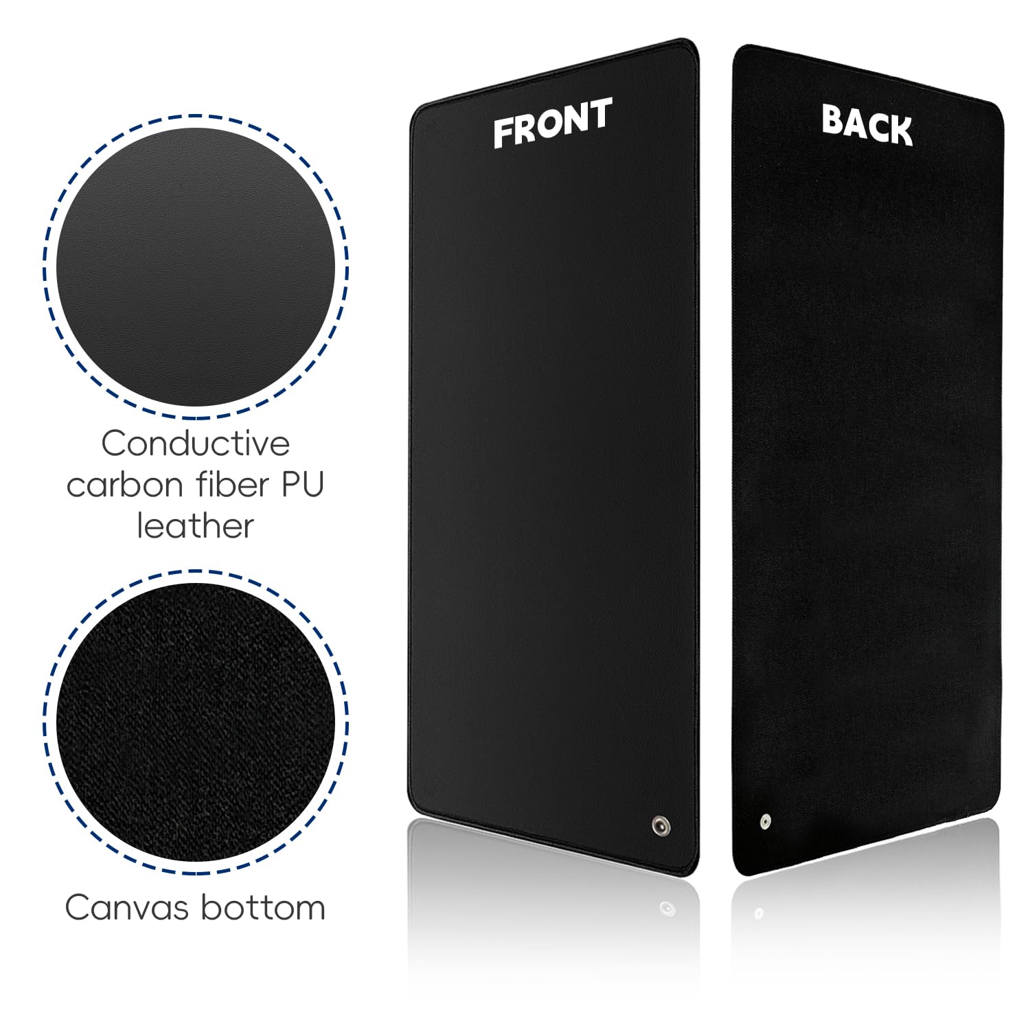 - 1.Ultra-soft Conductive Carbon Fiber PU leather: The grounding mat is made of conductive carbon fiber PU leather fabric, soft and waterproof, easy to clean, well suited for home and office.