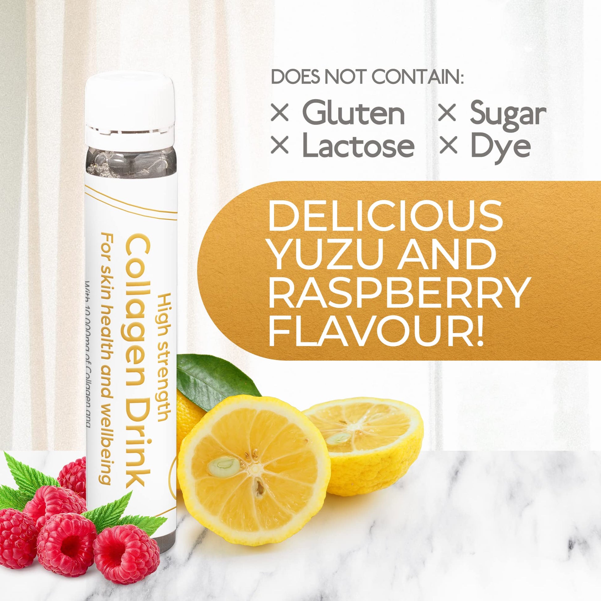 Yuliv High-Dosage Hydrolyzed Collagen Drink - Liquid Collagen Peptides (10000 mg) with Vitamin C for Hair, Skin, and Nails