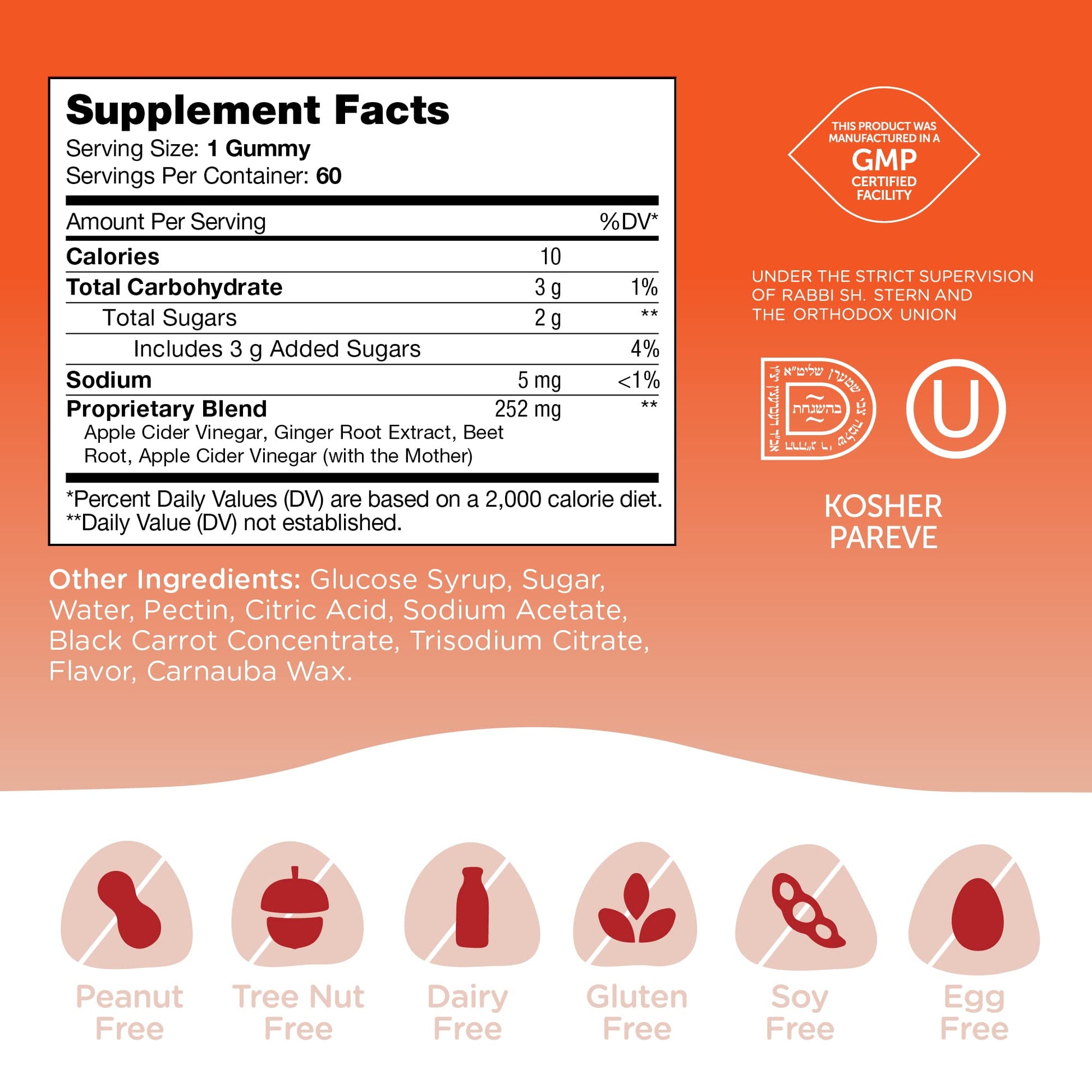 - CERTIFIED KOSHER - Our apple cider vinegar capsules are made with strict quality and potency requirements and are certified Kosher. Take one gummy daily or as directed by a healthcare provider, gummy should be chewed before swallowing.